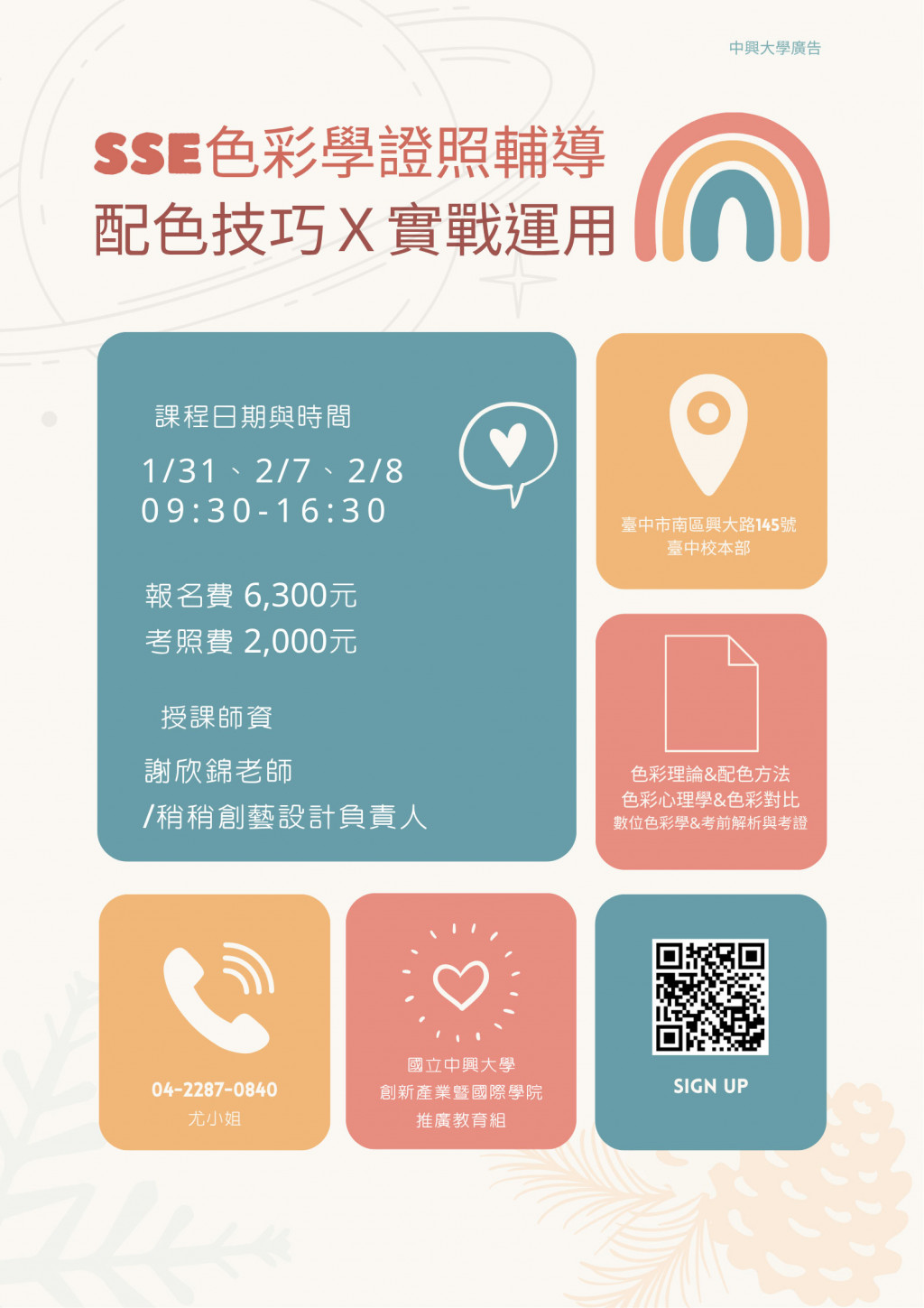 色彩學國際SSE證照輔導:1月31日、2月7日、2月8日三日營。 |