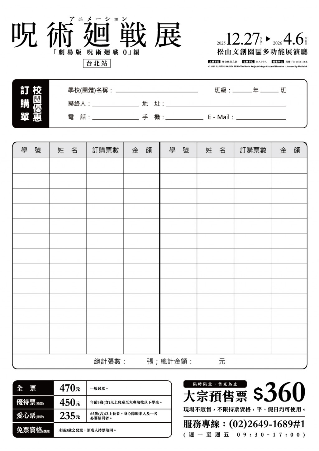 一、風靡全亞洲的超人氣動漫作品《咒術迴戰》,憑藉其獨特的世界觀和極具特色的人物角色設定,迅速吸引大量粉絲喜愛,繼漫畫熱銷破億、動畫橫掃各大獎項、《劇場版咒術迴戰0》締造票房佳績後,再度以沉浸式展覽席捲亞洲!今年12月「咒術迴戰展《劇場版咒術迴戰0》篇」將完整重現劇場版的熱血場景與角色魅力,除了可近距離欣賞劇場版的珍貴幕後創作資料、「最強咒術師」五條悟1:1模型與多款咒具神還原展示,更特別的是展覽加碼展出動畫第1季與第2季「懷玉・玉折」篇的精彩內容,同時也邀請到日本知名水墨畫家こうじょう雅之(Kojo_masayuki),以獨樹一幟的筆墨技法重新詮釋角色風貌,帶來與動畫、漫畫截然不同的視覺震撼體驗。透過展覽,學生們不僅能夠欣賞到動畫中的精彩場景與美術技術,還能深入探討劇情中的各角色及事件衍生的情感、倫理及人性議題,藉此也能進一步探討東方文化符號的象徵與現今社會日益重要的情緒管理學習,適合規劃為一場融合動畫藝術、文化深度的跨領域學習體驗活動。