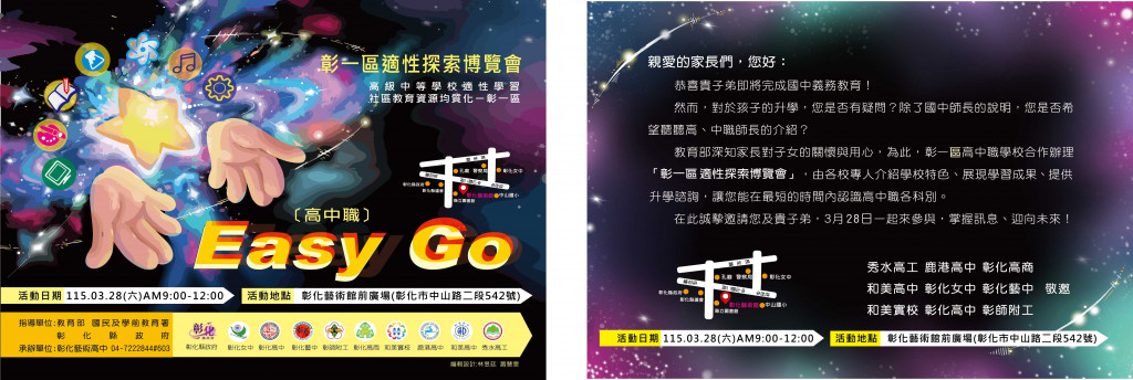 | 主旨: | 114學年度高級中等學校適性學習社區教育資源均質化實施方案:就近入學及特色課程宣導實施計畫 ─ 適性探索博覽會,鼓勵國三學生、家長參加。 |